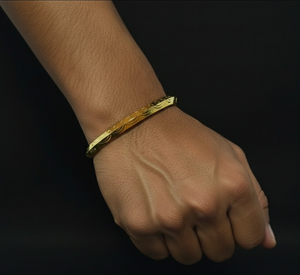 Inspired by the regal essence of traditional craftsmanship fused with modern minimalism, the Auric Crest Men's Kada celebrates strength and sophistication, perfect for the contemporary man who appreciates heritage and style.