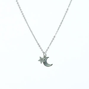 Design: Features a delicate crescent moon charm paired with a sparkling star charm, both suspended from a fine silver chain