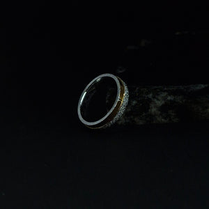 This ring is inspired by contemporary design trends, blending gold and silver tones for a fashionable statement.