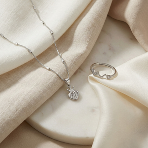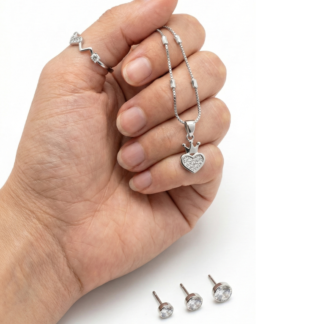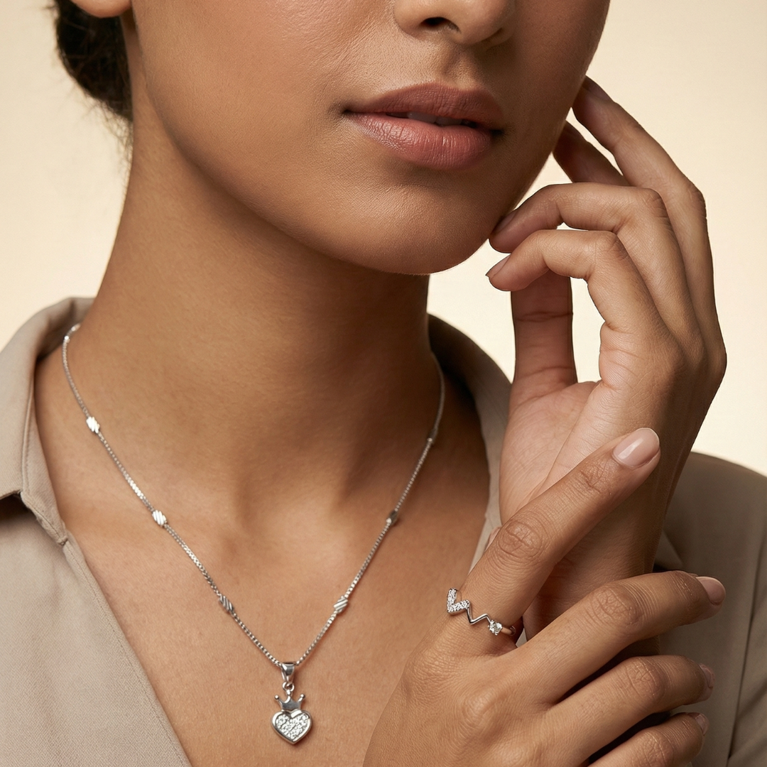 Inspired by the symbolism of love and quiet strength, this combo brings together a heart motif crowned with subtle detailing and clean, modern accents. The coordinated pieces reflect elegance without excess, making the set timeless and wearable rather than flashy.