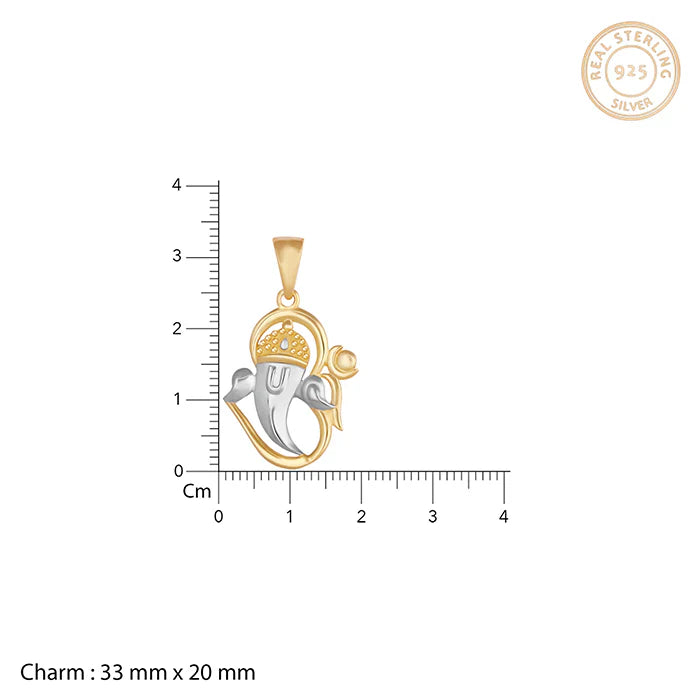 The pendant showcases a beautifully sculpted Ganesha with smooth sterling silver detailing and radiant gold-plated embellishments, creating a perfect balance of elegance and devotion.
