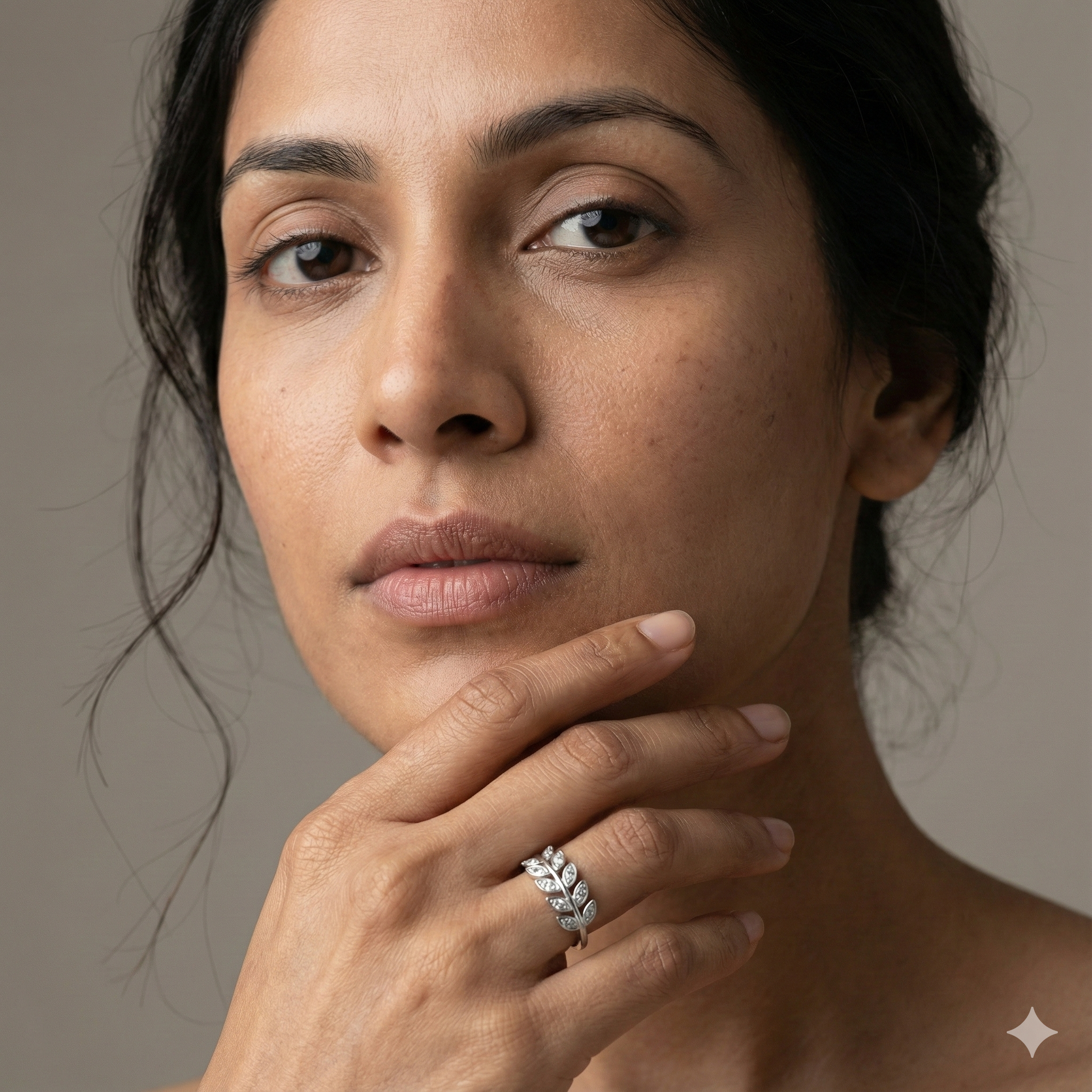 - Design: Delicate leaf motif adorned with sparkling stones for a sophisticated touch.
