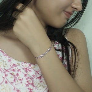The Eternal Love Silver Bracelet can be paired with formal attire for special occasions or worn casually to add elegance to any outfit.