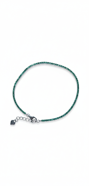 Pair the Evergreen Frost Tennis Bracelet with silver bangles, a classic white shirt, or festive attire for a pop of vibrant color.