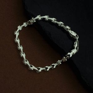 Inspired by the dynamic movement of oceanic life, this bracelet features unique fish-shaped links, celebrating the beauty of nature in a stylish design.
