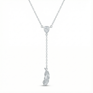 This necklace features a glimmering teardrop cubic zirconia at the center, leading to a delicate chain ending in a polished, feather-shaped charm. The modern, clean silhouette adds a whisper of sophistication and timeless charm, making it an essential accessory for every wardrobe.