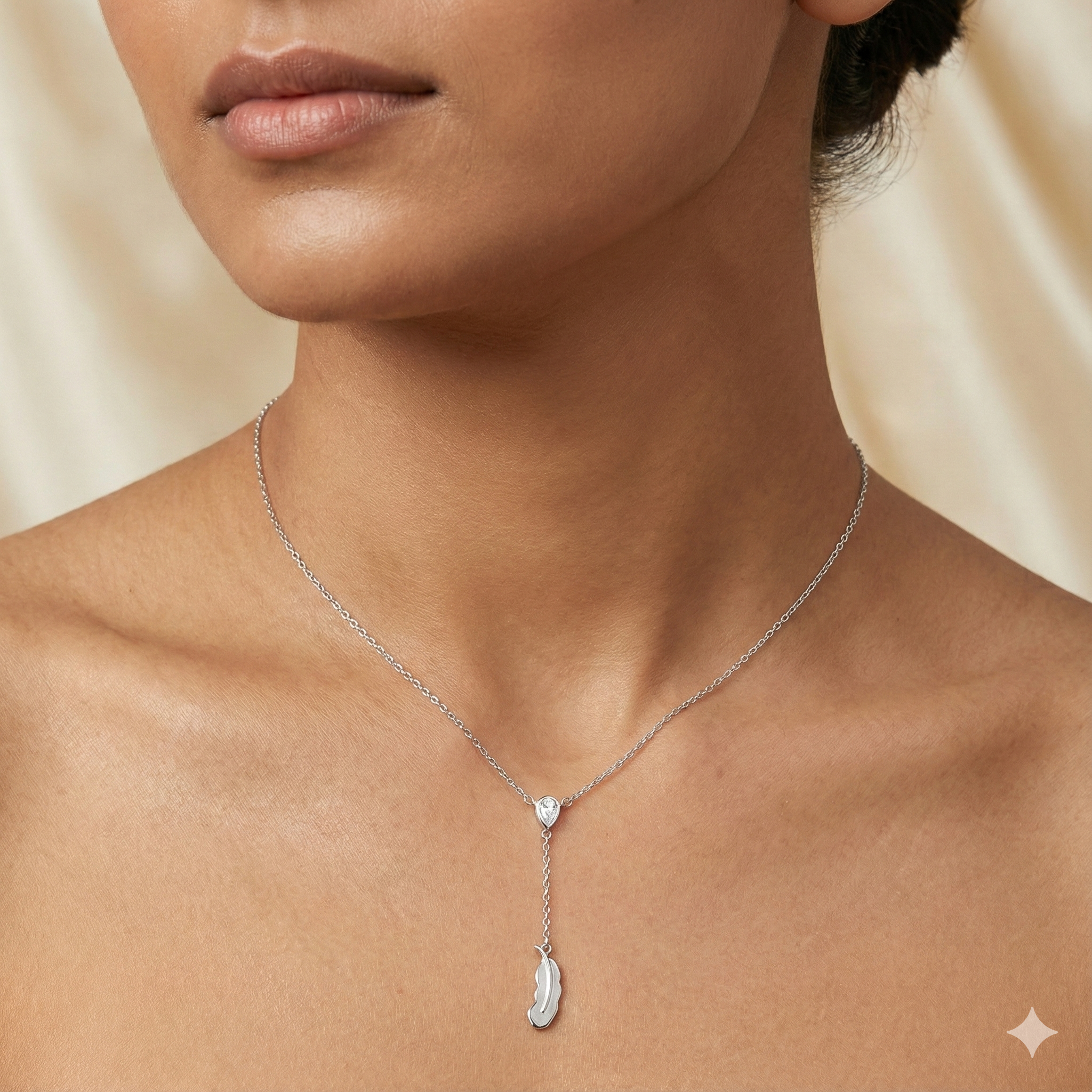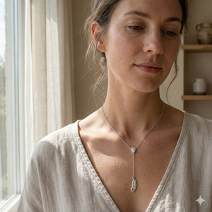 Layer the Feather Grace Drop Necklace with fine chains or pair with a simple blouse for understated elegance. It transitions smoothly from casual outings to sophisticated evening events.