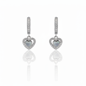 The design features a heart-shaped charm filled with glossy white enamel, framed by sparkling stones for a halo effect. This piece blends softness and shine, embodying the glamour of modern romance with every sway.