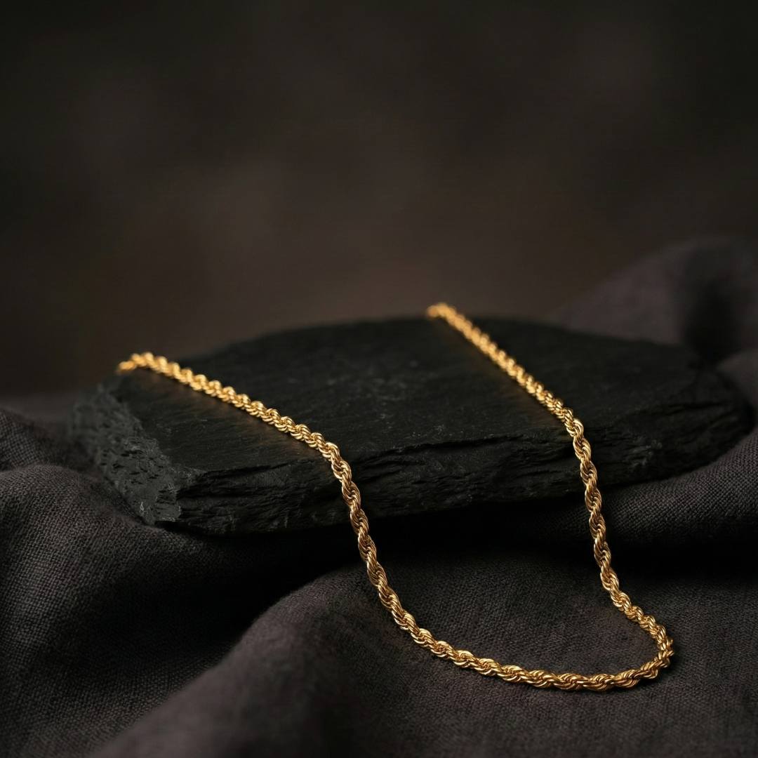 Inspired by intertwined strands and classic rope craftsmanship, this chain symbolises strength, continuity, and timeless style. The twisted structure adds depth and texture while maintaining a refined, premium appearance.