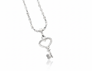 A beautifully crafted heart key pendant that represents the key to love and affection.