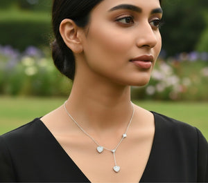 Pair the Heartlight Pavé Necklace & Stud Set with soft pastels, romantic dresses, or layered minimal jewelry to highlight its sophisticated sparkle.