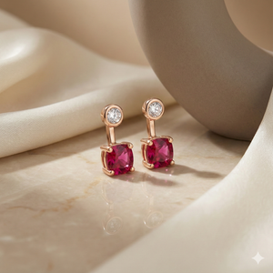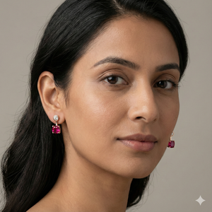 Showcase the Lustra Ruby Prism Drop Earrings with hair swept back or a sleek updo to highlight their dual sparkle and vivid coloring.