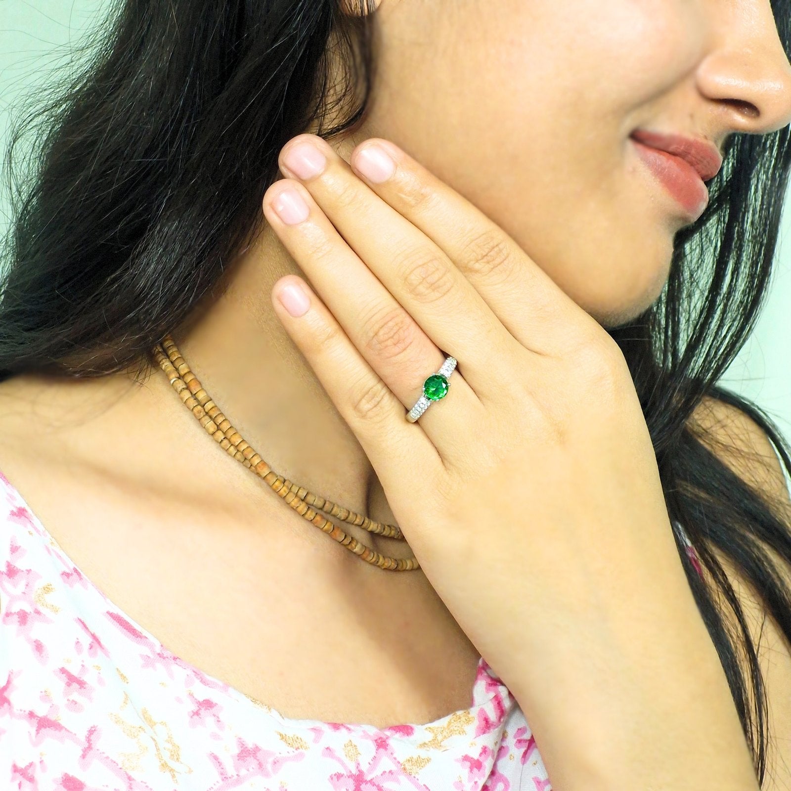 Wear the Radiant Emerald Silver Ring with elegant attire for special occasions, or pair it with casual outfits to elevate your everyday style.