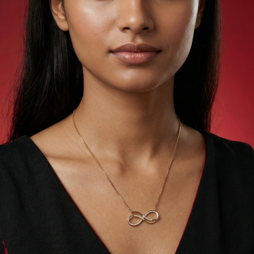 The Radiant Infinity Necklace is ideal for elevating both casual and formal attire, adding a minimalist yet meaningful accent to your jewelry collection.