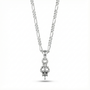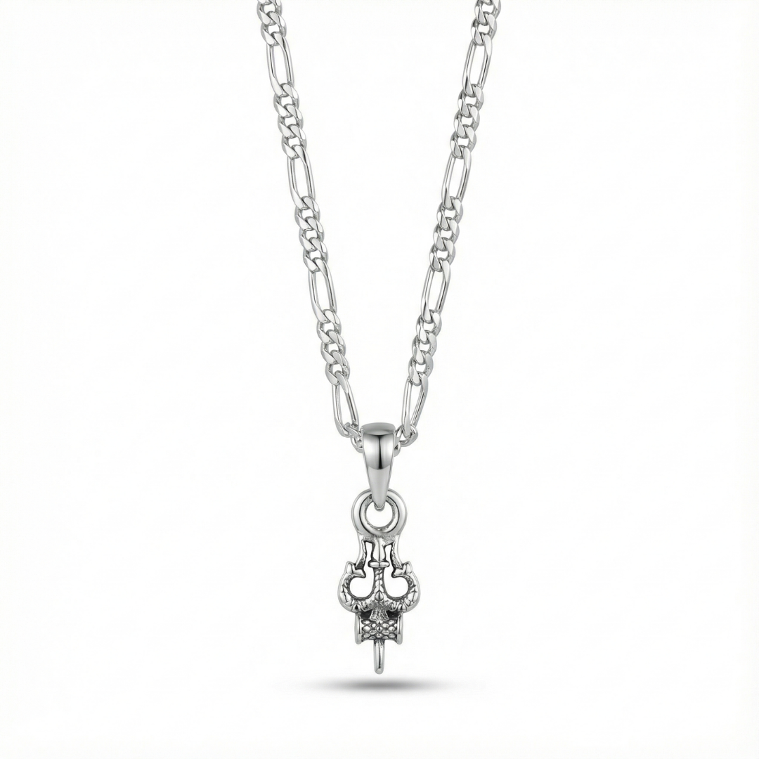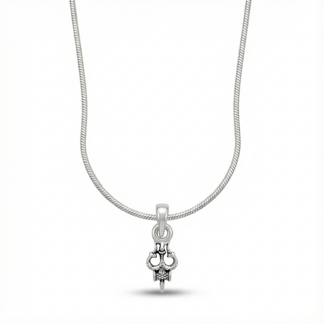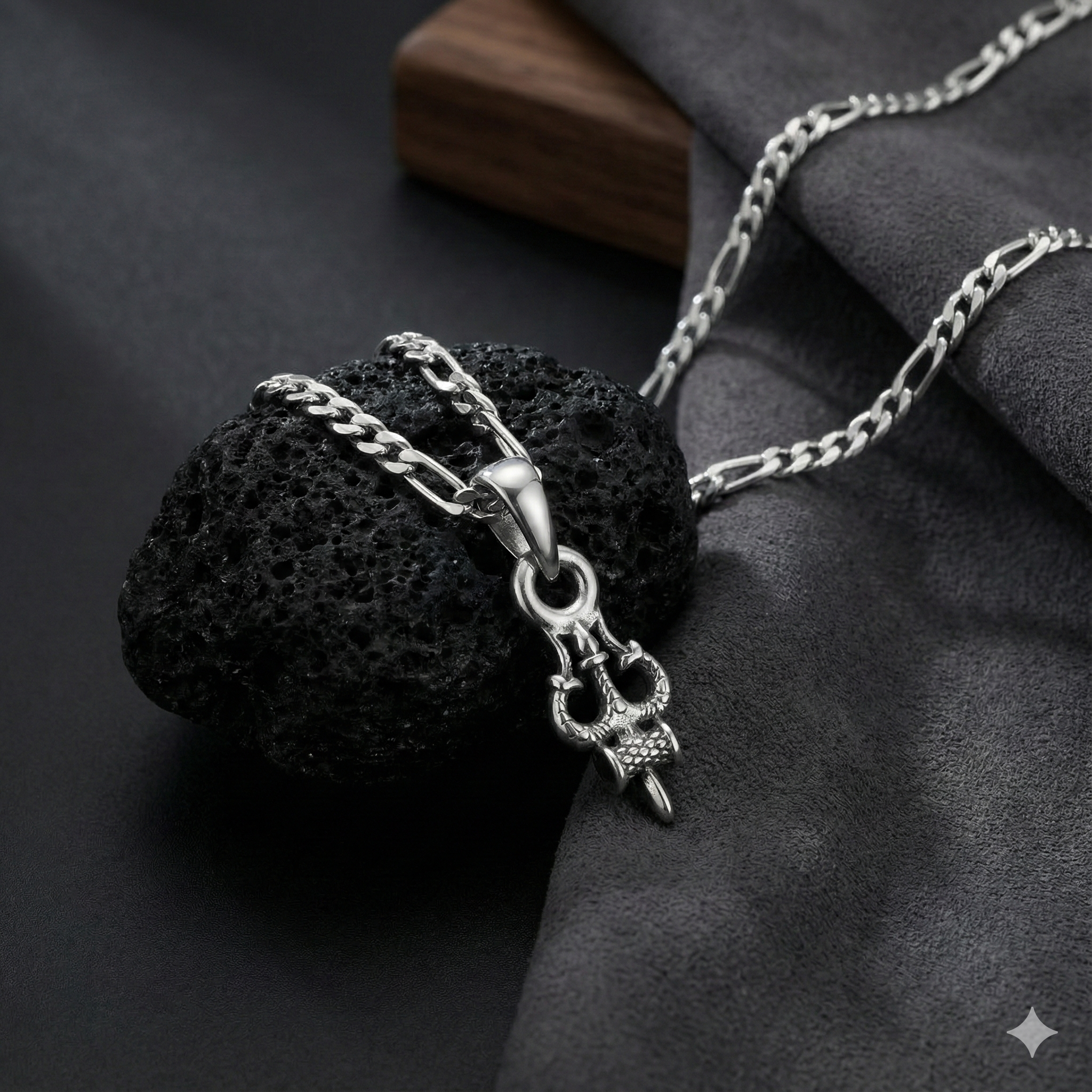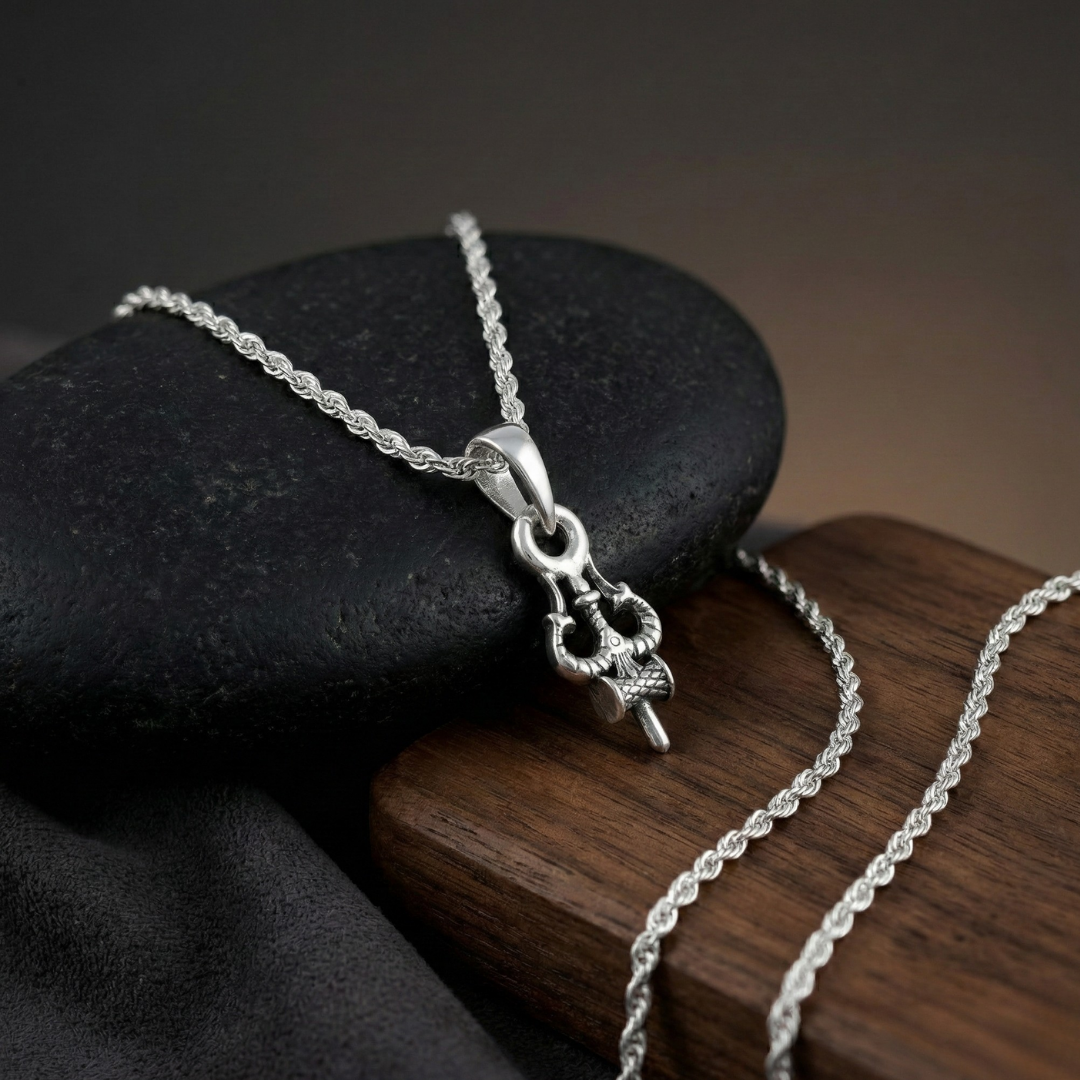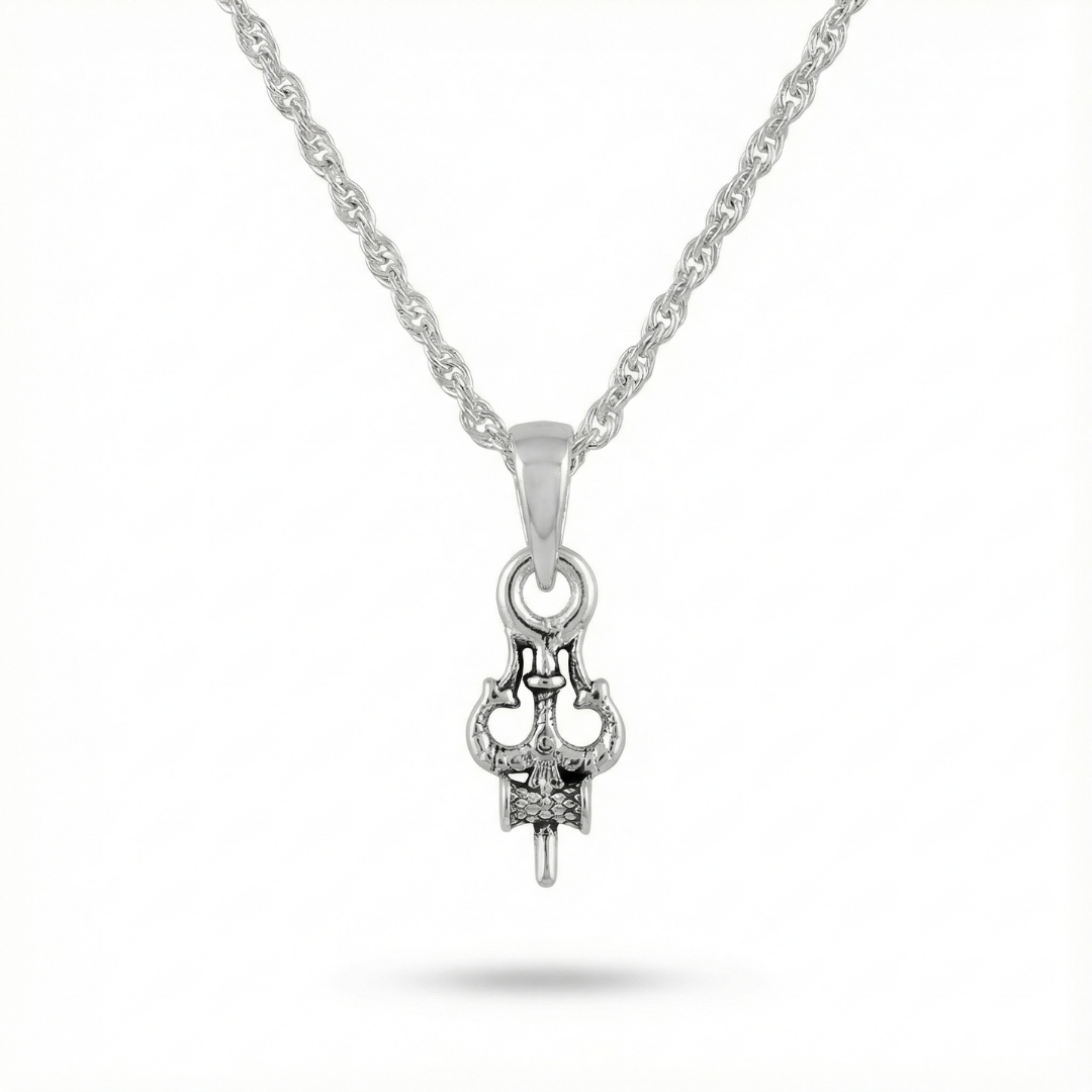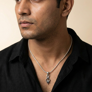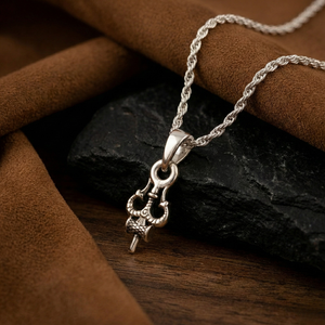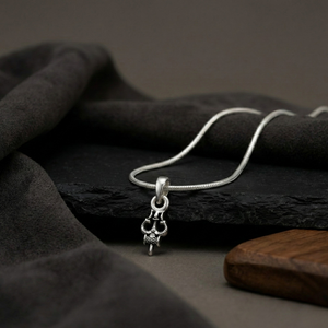 Inspired by Lord Shiva’s symbols of creation, destruction, and balance, this pendant combines the Damru and Trishul in a single powerful form. It represents rhythm, strength, and spiritual authority, expressed through a compact yet commanding design.