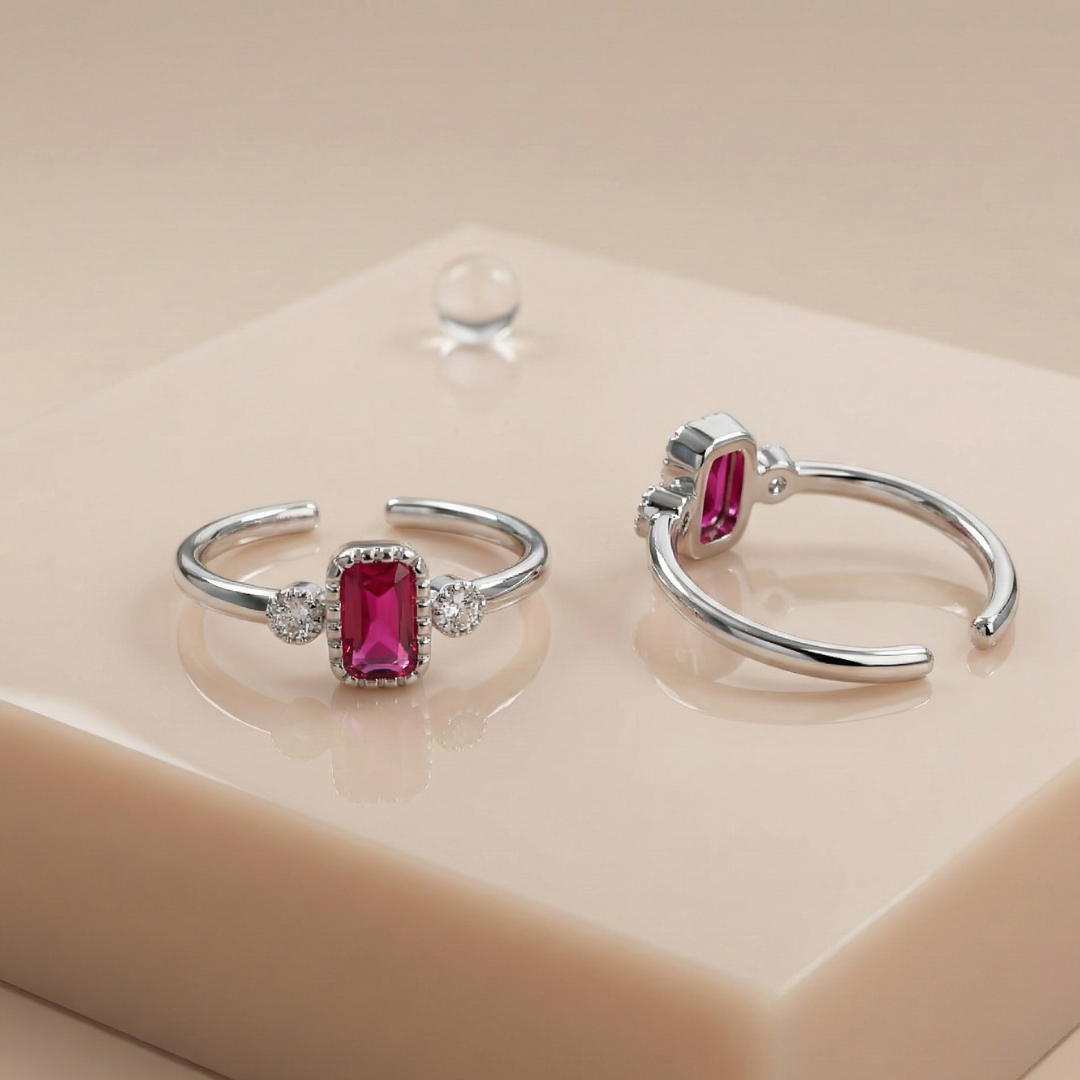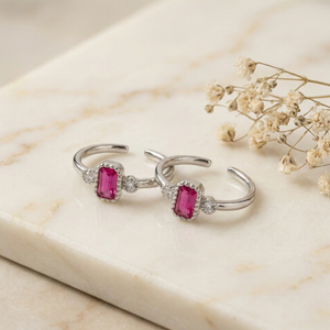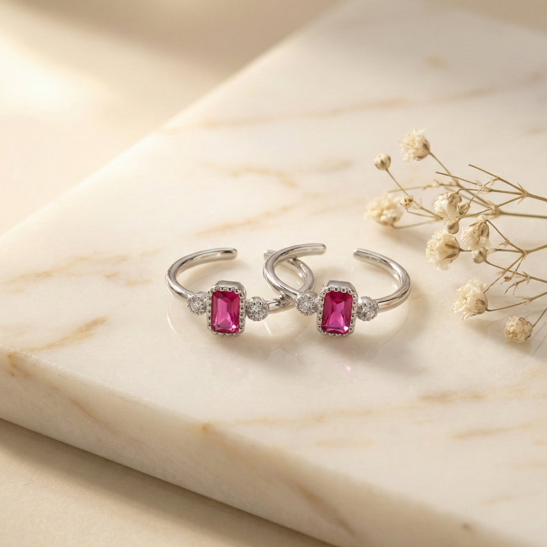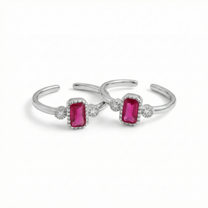 Ruby Glow Silver Toe Rings (Pair)