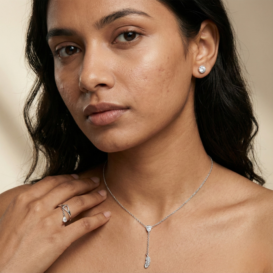 Crafted in certified 92.5 sterling silver, this combo reflects Lustra’s focus on purity, durability, and refined finishing, ensuring lasting shine and skin-friendly comfort.