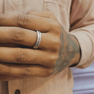 Inspired by modern elegance, this ring combines texture and shine for a stylish accessory.