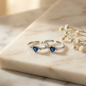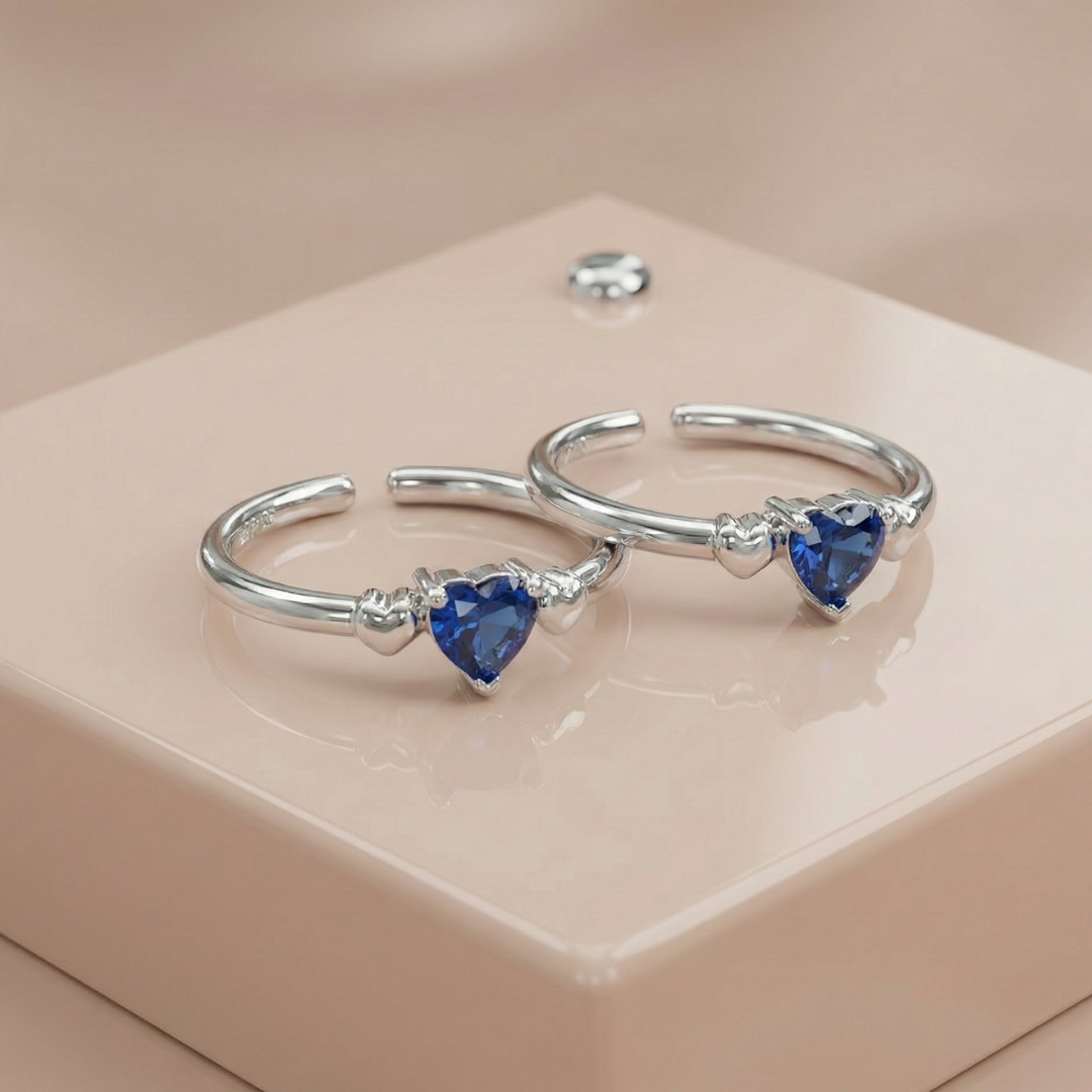 Inspired by deep sapphire tones and the timeless heart symbol, these toe rings are made for women who love subtle romance. The dangling heart stone adds movement, sparkle, and an instantly luxe look in sandals or barefoot styling.