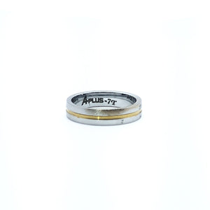 This ring is inspired by the blend of classic and contemporary styles, featuring striking contrasts in metal tones for a unique statement.