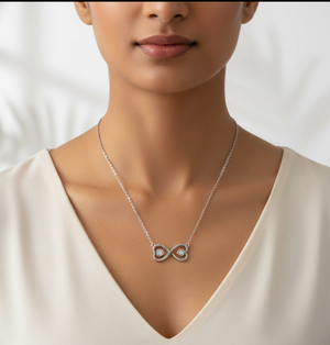 A symbol of endless love and connection, this necklace combines the infinity motif with delicate heart shapes, reflecting eternal affection and devotion.