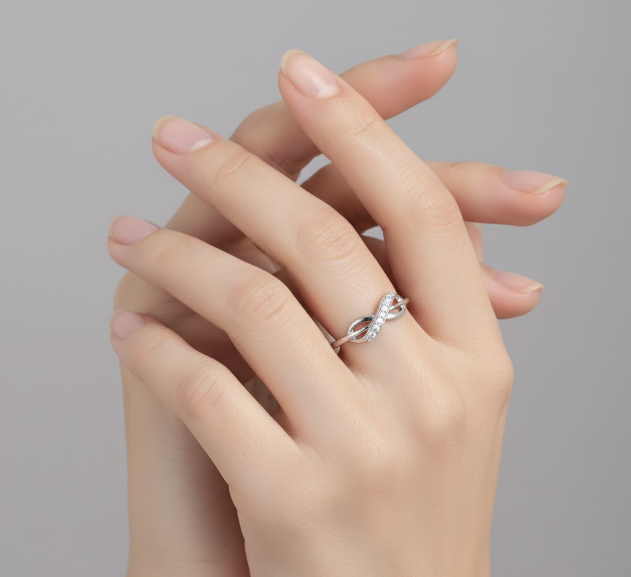 The Twisted Infinity Ring is perfect for stacking with other rings or can be worn alone for a chic, minimalist statement.