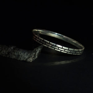 Design: Featuring a distinctive engraved brick-like pattern along the band, creating a textured and bold statement piece
