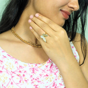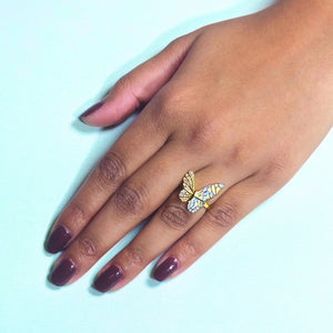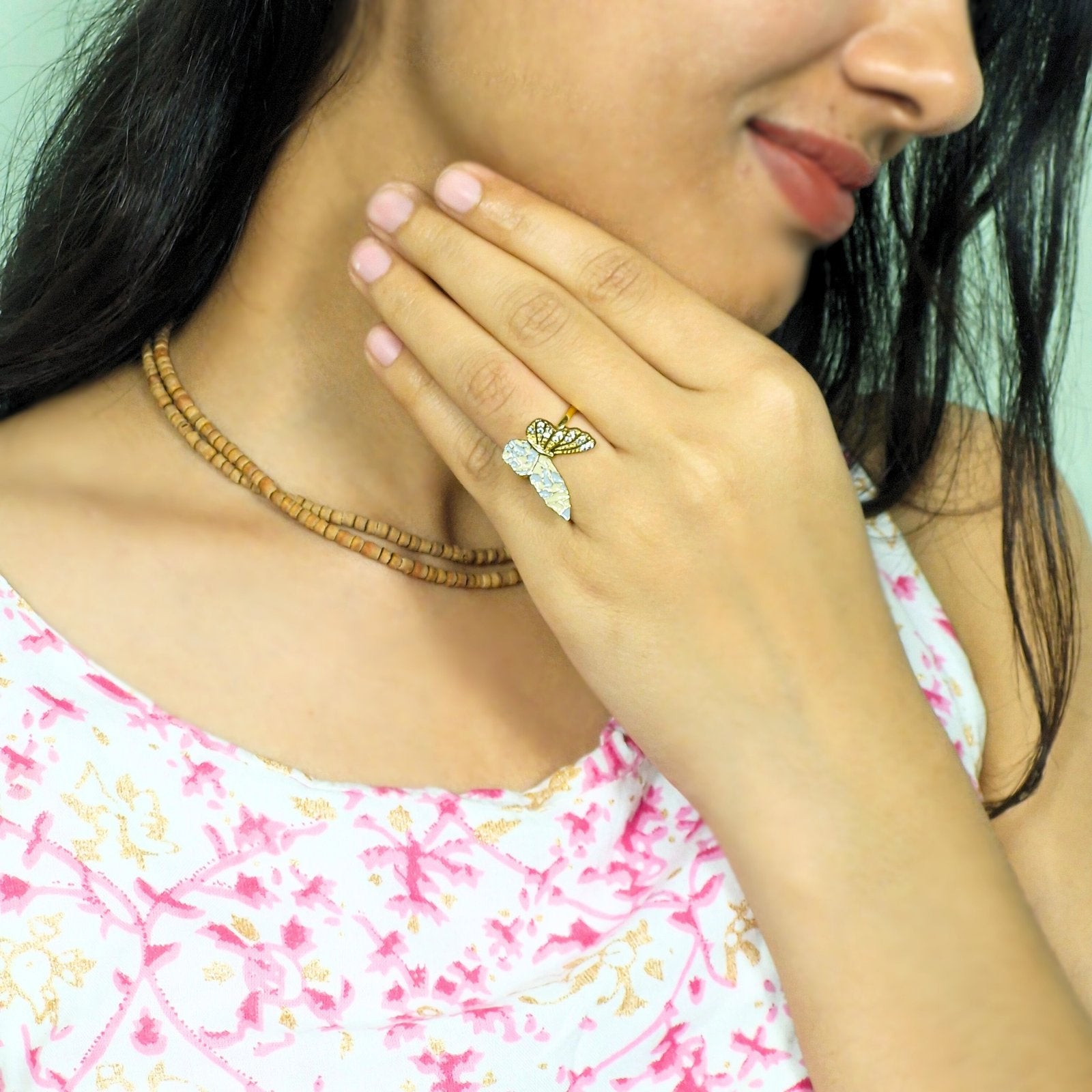 Inspired by the delicate beauty of butterflies, this ring captures a playful charm, making it a delightful accessory for nature lovers.