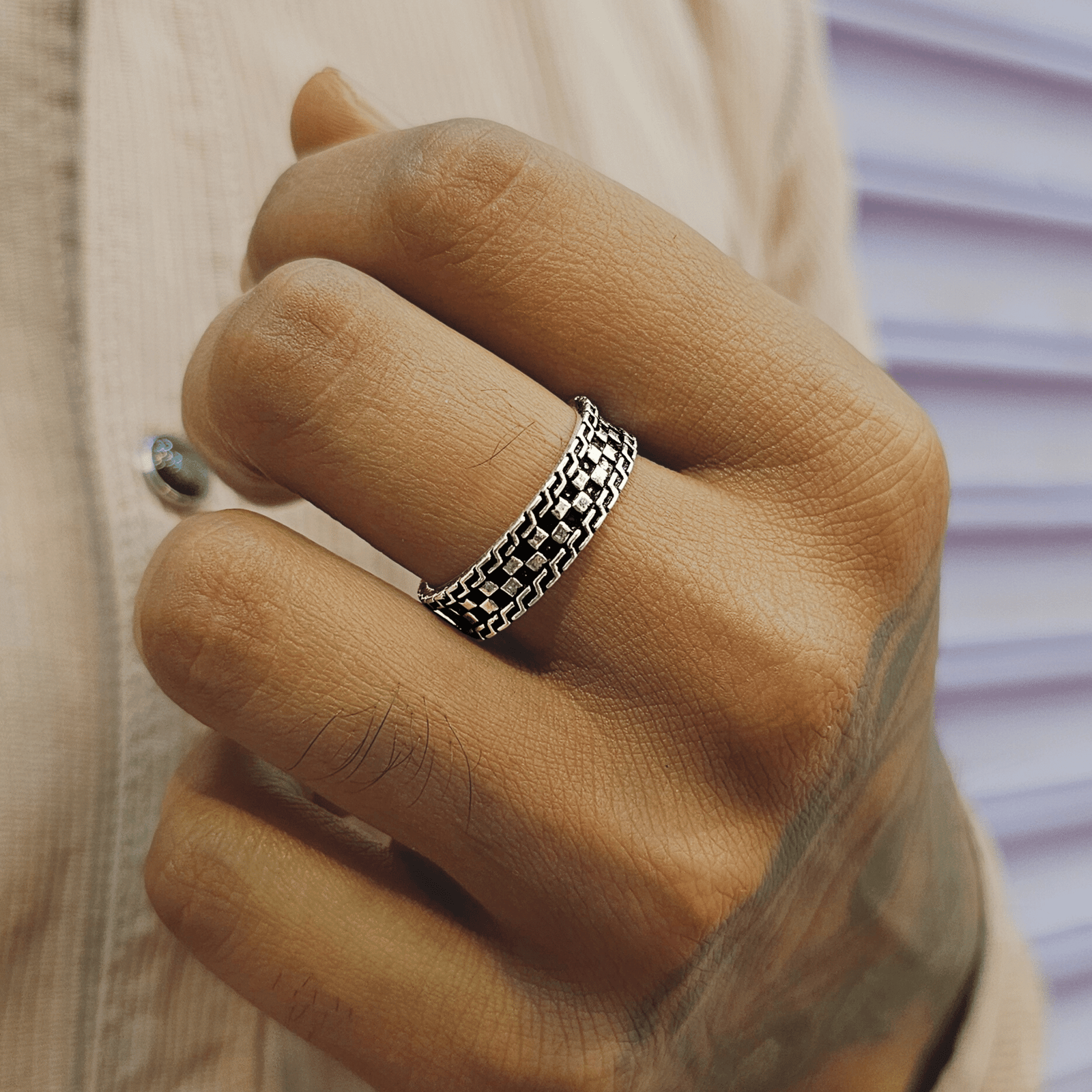 Drawing inspiration from traditional craftsmanship, this ring features a woven pattern that exudes artistry and elegance.